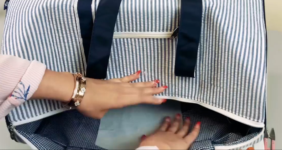 現(xiàn)在我們來看看怎樣在大行李包上刺繡的,
